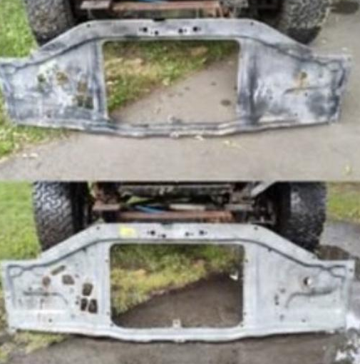 Works great !! Before and after.. 3100psi pressure washer and Black Diamond media from Tractor Supply